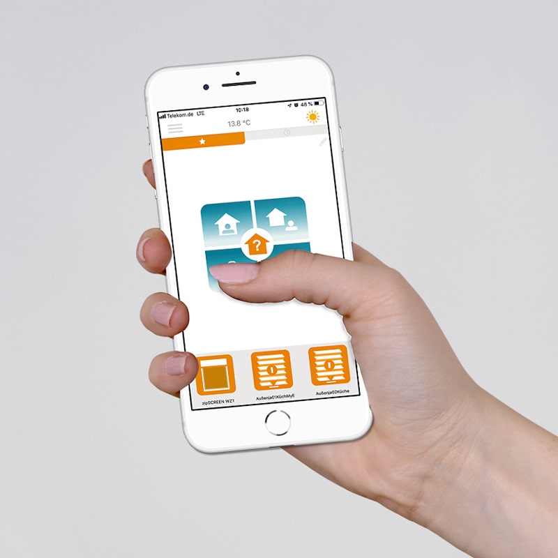Die handliche ROMA Funksteuerung steuert Licht und Schatten bequem von jeder Stelle Ihres Hauses aus. Lassen Sie morgens vom Bett aus die Rollladen hochfahren. Oder fahren Sie abends von der Couch aus alle Rollladen herunter.