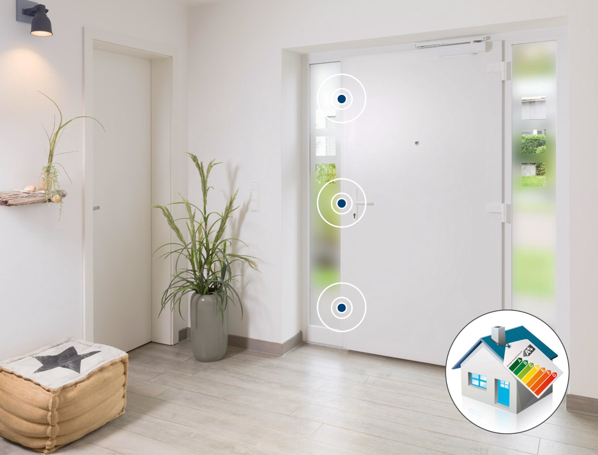 Die ständige Mehrfachverriegelung sorgt für dauerhafte Dichtigkeit. Das Resultat: Wertvolle Energie geht nicht verloren, ein behagliches Wohnklima, ein gutes Gefühl bei den Energiekosten.
