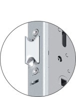 - Die Fallenbolzen dienen neben den Schwenkriegeln als weiteres Riegelelement und sorgen als Aushebeschutz für noch umfassendere Aufbruchsicherheit